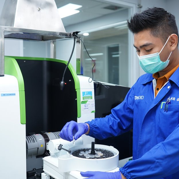 Ikhza Mahendra führt im Labor von TÜV NORD Indonesia Tests durch, um mögliche Schwermetalle in einer Probe zu identifizieren. Bildquelle: Yohanes Wibisono /TÜV NORD Indonesia